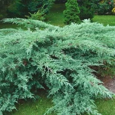 Среднерослый, раскидистый кустарник, высотой не более 1,5-2 м, и шириной 2-2,5 м, состоит из множества ветвистых побегов, покрытых красно-коричневой корой. Все молодые веточки укрыты чешуйчатой хвоей, зеленного цвета с сизо-голубым отливом. Внутри кроны хвоя игольчатая длиной 0,5-0,7 см. Поникающие ветви, достигая земли, легко укореняются, позволяя растению разростаться в ширину. Ежегодный прирост незначительный, в среднем 10-15 см. Плоды – вначале зеленые, после созревания сине-черные, с выраженным сизым налетом, шишкоягоды, в диаметре 0,6 см, выгодно выделяются на зеленом фоне. Можжевельник дымо-, пыле- и газоустойчив, хорошо переносит городские условия. Засухо- и ветроустойчив. Морозоустойчив.