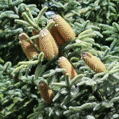 Поздней весной, в начале июня побеги растения опушаются пыльцой розоватого окраса. Шишки крупные, длина их достигает 200 мм, ширина – 100 мм. Молодые шишки имеют фиолетовый окрас, по мере роста покрываются желтовато-розовыми чешуйками. На ростках образуется большое количество шишек, раскидисто свисающих в стороны, под своей тяжестью, что становится дополнительным украшением невероятно привлекательной кроны. Семена крупные (1,2 см), серо-коричневого цвета, имеют крыло длиной приблизительно 1,5 см. Зачастую используют пихту для создания живых изгородей, ведь ее пышная, густая крона может выполнять функции живого забора, через который сложно что-либо разглядеть. Учитывая, что это лесообразующая пихта, она может использоваться для создания хвойных рощ. В комплексе растения прекрасно сочетаются, создавая интересный ландшафтный дизайн. Не менее интересно пихта выглядит в одиночной посадке, ее пушистая крона достойна восхищения в любое время года. Зимой, при соответствующем декорировании, не редко играет роль новогоднего дерева.