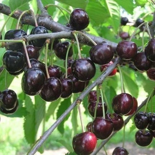 - Овальной формы, тёмно-красного, а при полной зрелости - почти чёрного цвета, сухо оделяются от плодоножки. Кожица тонкая, но прочная, глянцевая. Мякоть крайне сочная и мясистая, как и кожица, тёмно-красного цвета. Косточка коричневая, легко извлекается;